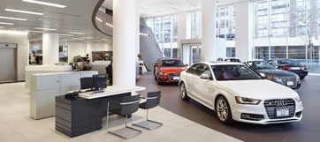 The below image of Audi Manhattan shows the Program's trademark open ground-floor sales area and race track.  view full article