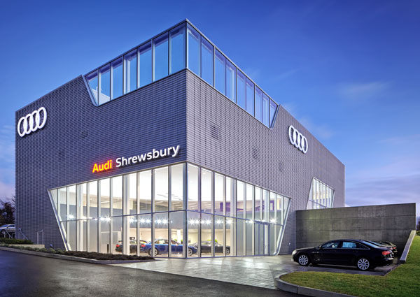 The Audi of America architecture master plan is based upon a conceptual spatial idea developed by Allmann Sattler Wappner for AUDI AG. Each dealership shares a consistent programmatic and circulation logic as well as material palette, but is unique in form according to the demands of the site and dealer team.